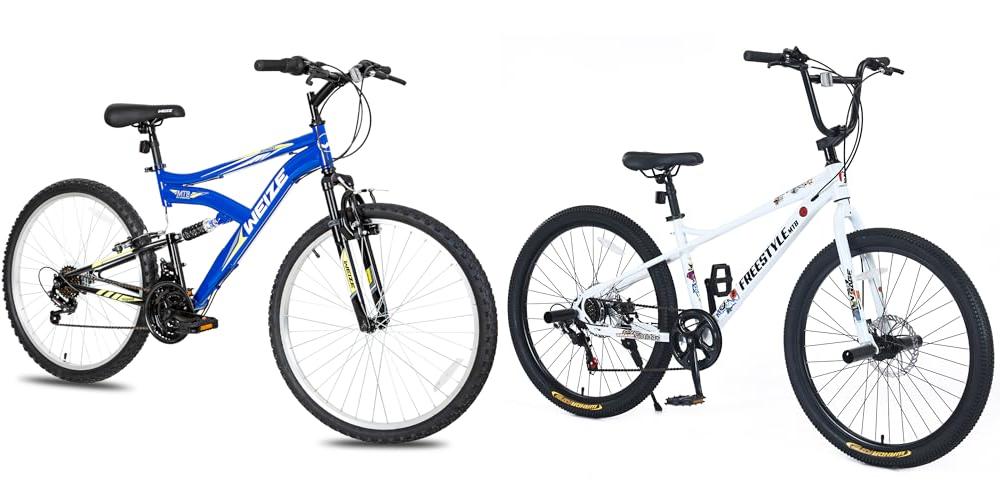 The WEIZE Mountain Bike is ready for adventure! This outdoor cycling bike comes in 26 or 27.5-inch sizes. It has 18 speeds to help you climb hills and cruise on flat ground. The bike has a strong steel frame with front and rear suspension. This makes for a smoother ride. It’s designed for men and women, ages 13 and up. The ergonomic seat keeps you comfortable. You can assemble the bike quickly, in about 20 minutes.