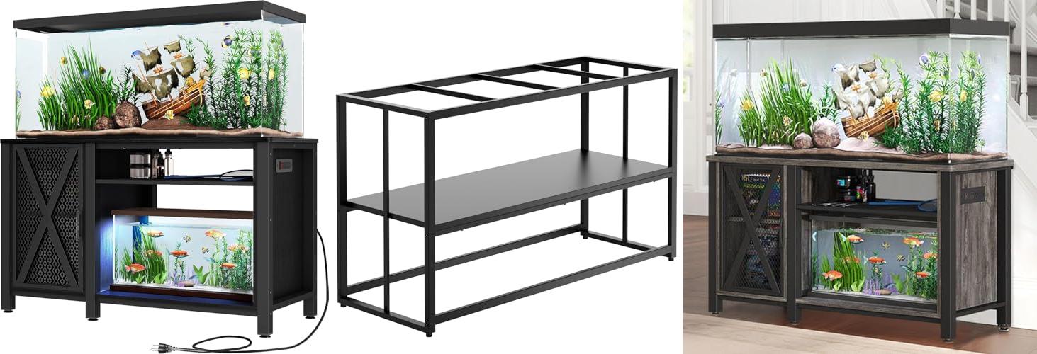The YITAHOME Heavy Duty Aquarium Stand is a sturdy and practical solution for any fish or turtle enthusiast. This stand is built tough to hold your aquatic friends’ homes securely. It also offers smart storage and convenient features to make keeping your aquarium tidy and your equipment powered up a breeze.