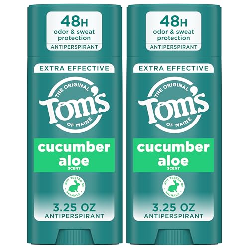 Stay fresh and confident all day with Tom’s of Maine Cucumber Aloe Antiperspirant! This 2-pack includes two 3.25 oz sticks. It’s made for both women and men. This antiperspirant uses recycled aluminum. It offers 48-hour protection against sweat and odor. The cucumber aloe scent keeps you feeling clean. It is tested by dermatologists. It also has no artificial fragrances, parabens, or baking soda. Tom’s of Maine never tests on animals.
