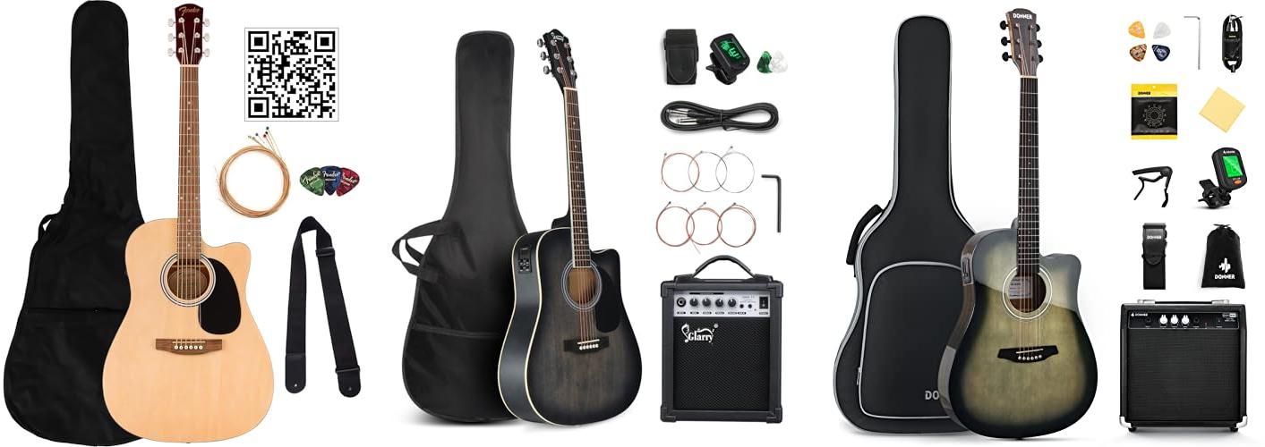 - This kit comes with everything you need to start playing right away: an amplifier, tuner, capo, extra strings, strap, picks, and a cable.