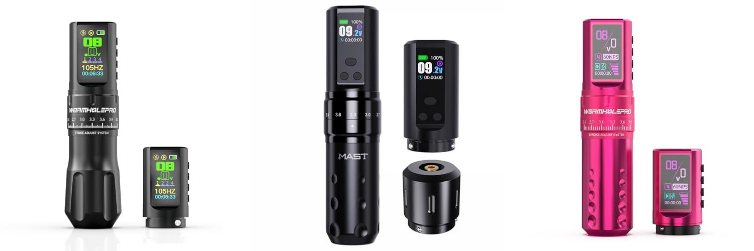 The WORMHOLE PRO 7 VIRGO Wireless Tattoo Machine is a powerful tool for tattoo artists. It’s a wireless tattoo pen with a coreless motor. It has an adjustable stroke length and a digital LED display. This tattoo machine helps artists create detailed designs. It also has a long-lasting battery and different operating modes.