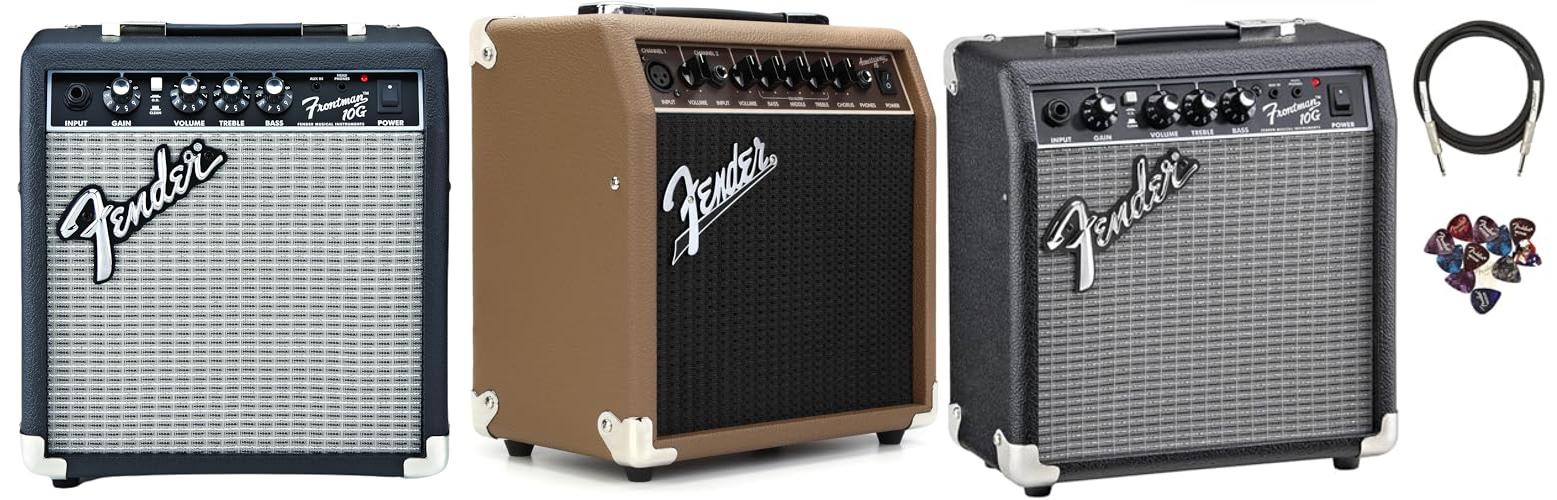 The Fender Frontman 10G Guitar Combo Amplifier – Black Bundle with Cable and Austin Bazaar Exclusive 12-Pack Picks is a fantastic package for any beginner guitarist. It gives you everything you need to plug in and start playing right away.