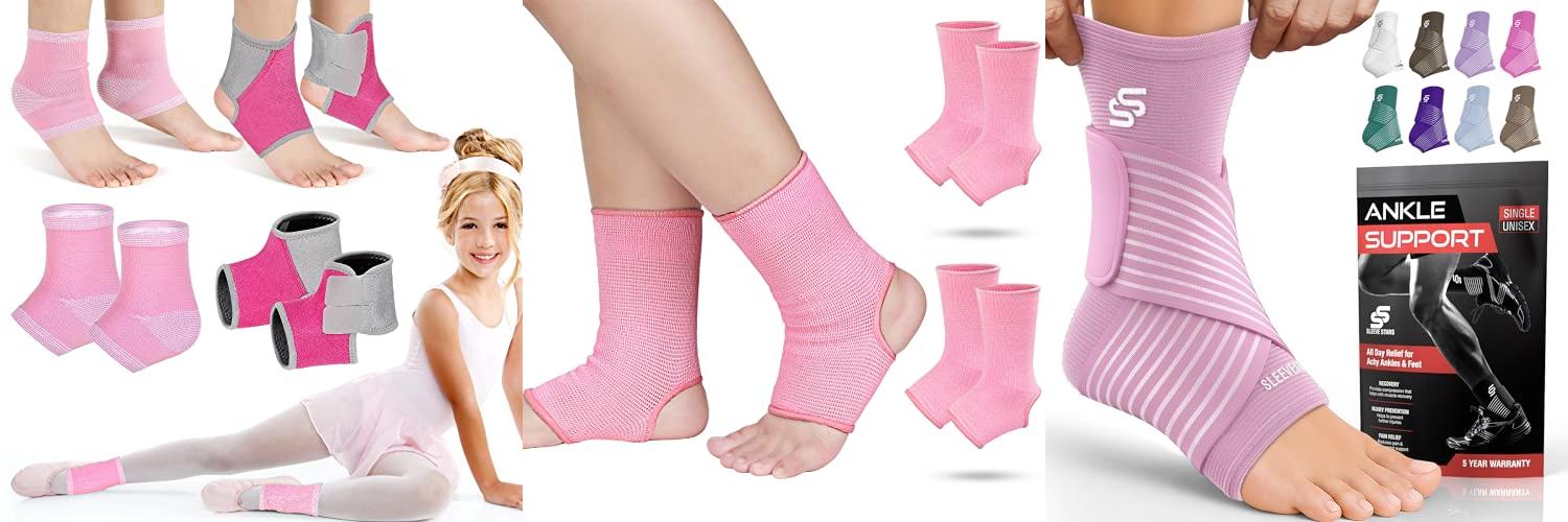 1. Tarpop 2 Pairs Kids Ankle Brace Set Foot Support Stabilizer Wraps Protector Guard Knitted Ankle Sleeve Sock Support Compression Socks for Injury Prevention(Pink