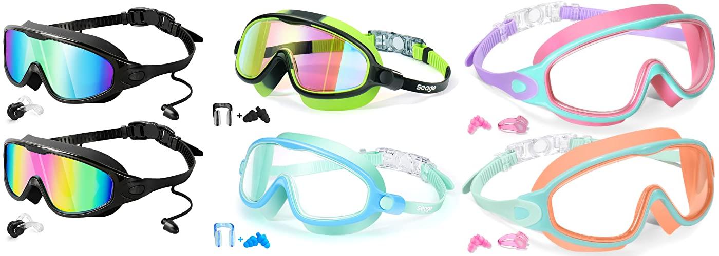 2. Seago Swim Goggles 2 Pack Anti-Fog Anti-UV Wide View UV Protection
