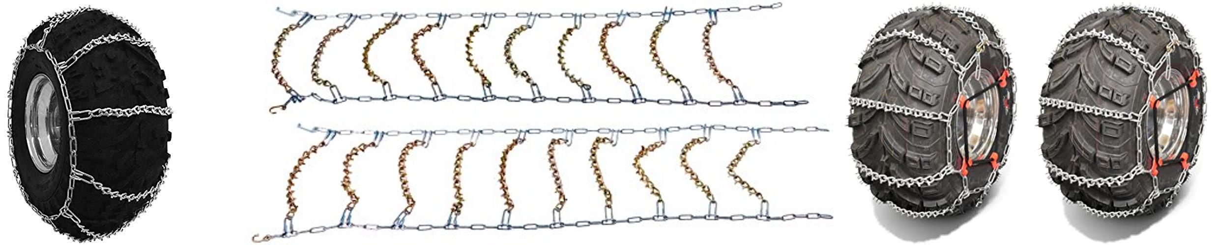 A: You need chains that fit your ATV’s tire size. Check the tire sidewall. It will tell you the size.