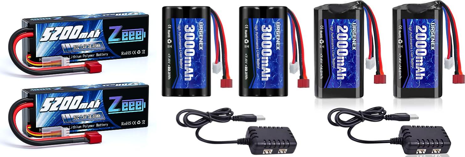 The URGENEX 2000mAh 7.4V Li-ion Battery is a rechargeable battery for your RC cars. It has a Dean-Style T Plug and fits many RC car models. This battery is designed for WLtoys 4WD high-speed RC cars and other 1/10, 1/12, and 1/16 scale RC cars and trucks. It promises more power and longer run times for your RC fun. The battery also comes with a 7.4V charger.
