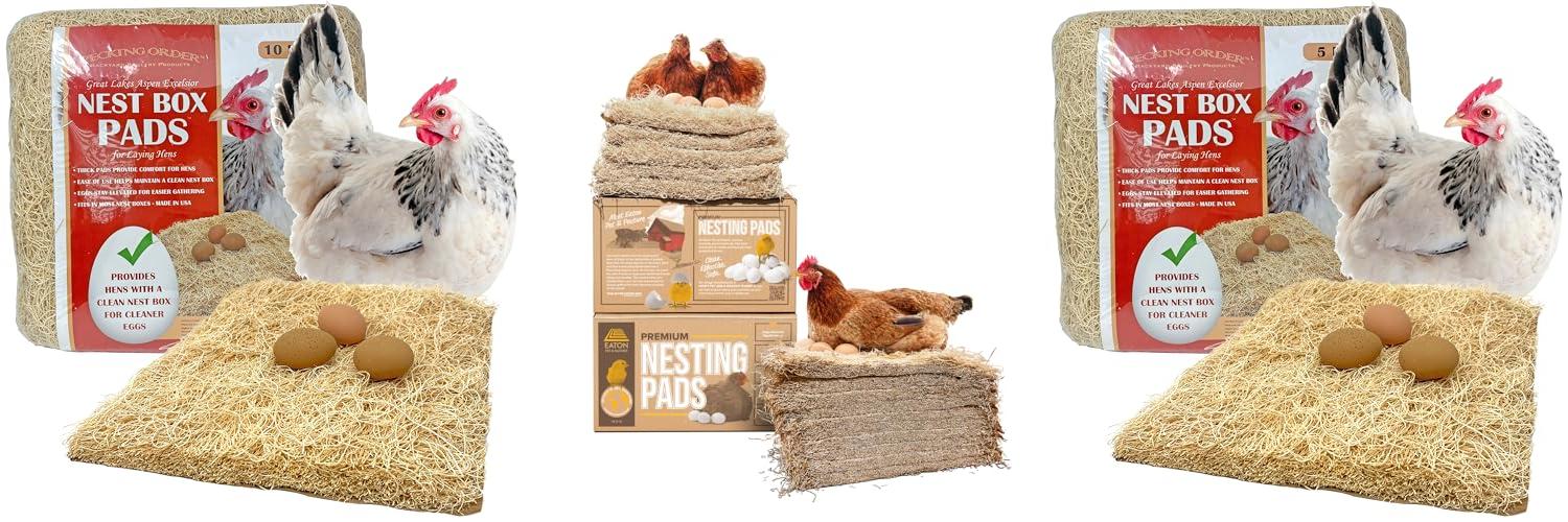 1. Nest Box Pads for Chicken Nesting Boxes – 13 x 13 Pads Made in USA from Sustainably Sourced Aspen Excelsior (10 Pack)
