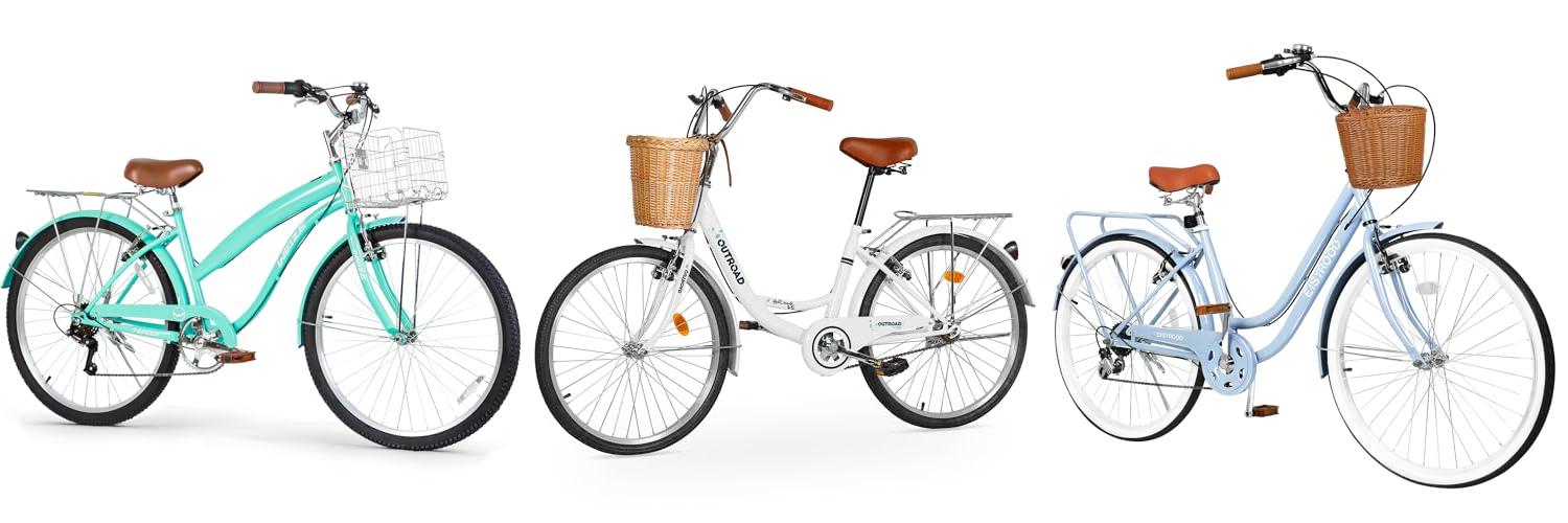 The Outroad Beach Cruiser Bike is a 24-inch commuter bicycle designed for adults. It’s made for both men and women. This bike has a high-carbon steel frame. It aims to offer a comfortable ride around the city. It has a rear rack or basket. The bike comes in white. It promises to be durable and easy to ride. It also has a modern design.