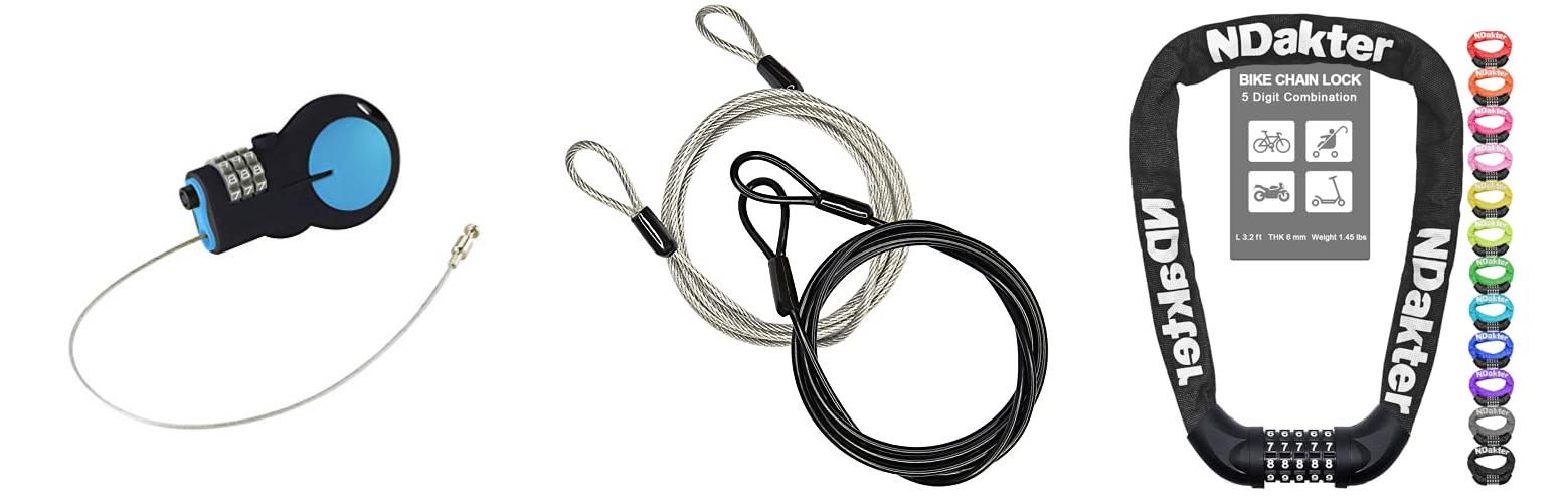 - Chain locks: These are flexible and can lock to many things. They can also be heavy.