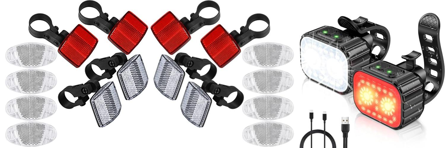 - The kit includes front, rear, and wheel spoke reflectors.