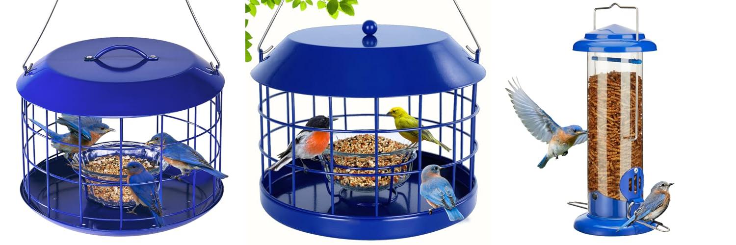 A: Good bluebird feeders have features like cages or baffles to stop squirrels. If squirrels are a problem, look for these features.
