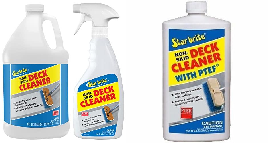 The STAR BRITE Non-Skid Deck Cleaner & Protectant is a great way to clean your boat or deck. It washes away grime and protects surfaces from stains. This 22 OZ spray bottle (085922P) makes cleaning easy and keeps your surfaces looking their best. It works on many different surfaces, so it is very useful.