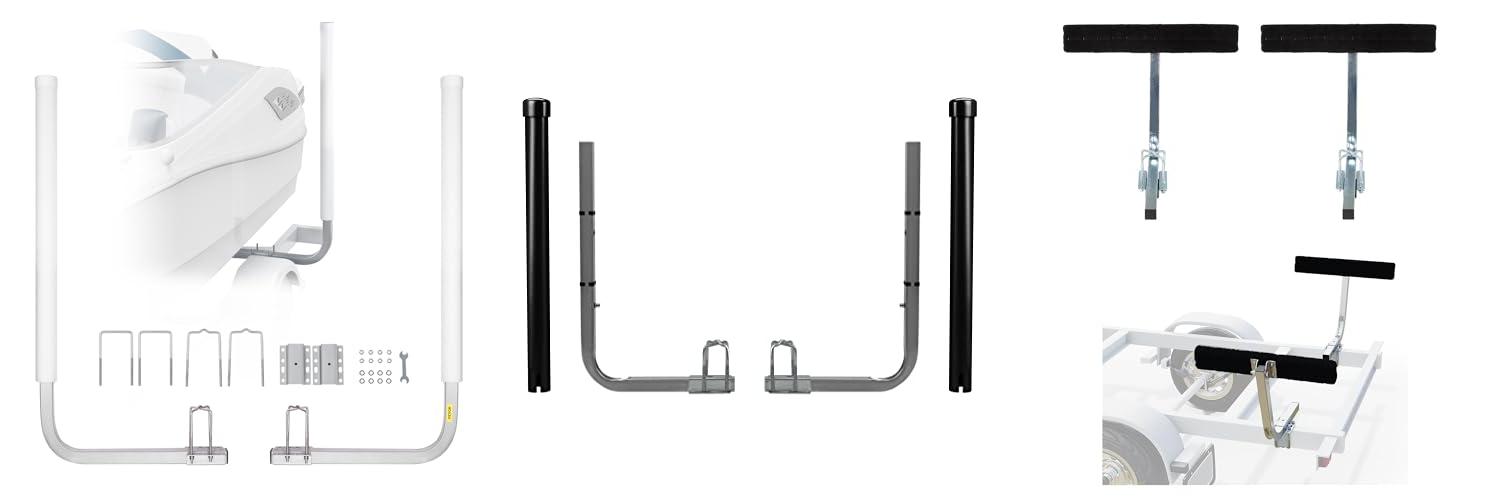 The JY PERFORMANCE Boat Trailer Guide-ons are here to make loading and unloading your boat a breeze! These guide-ons are built to last. They help you get your boat onto the trailer safely and easily. They are made of strong, rust-resistant steel. The bright white PVC pipes help you see where to go. This set is adjustable so you can fit it to your boat and trailer.