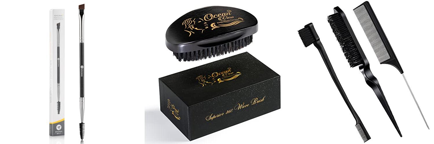 - The set comes with three essential tools: a double-sided edge brush, a bristle brush, and a pin tail comb.