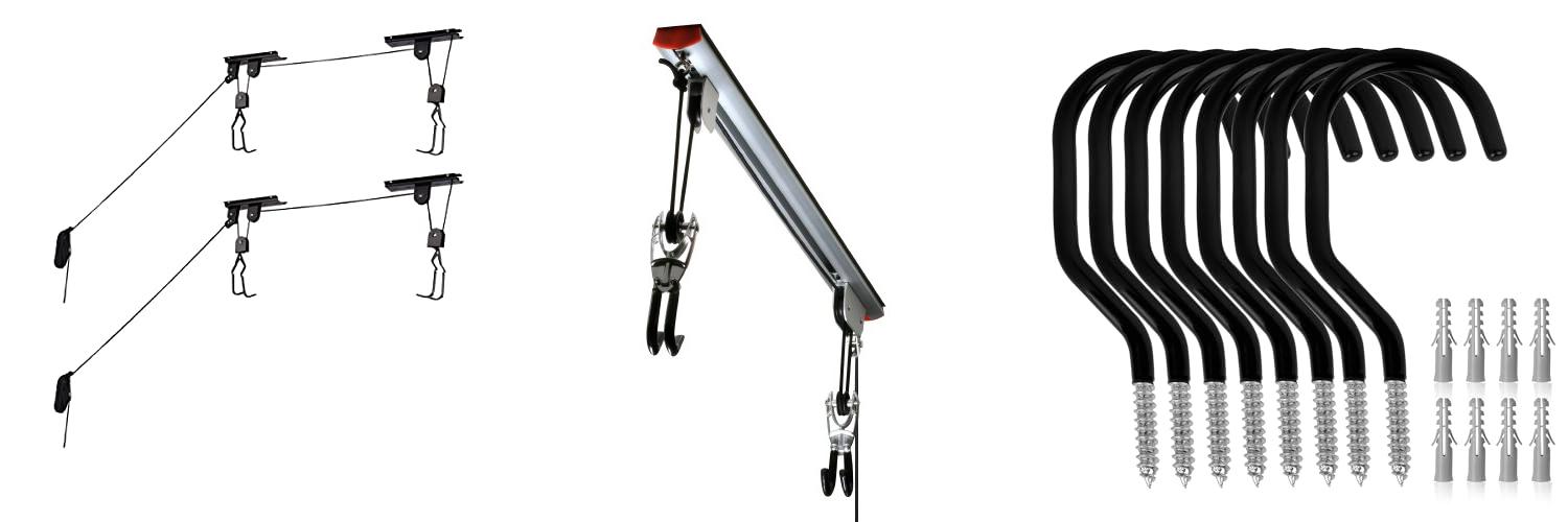 - These hooks can hold many items. You can hang bikes, tools, and more.