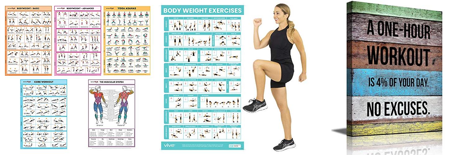2. Vive Body Weight Exercise Poster – Workout for Home Gym Laminated Chart – Room Decor Accessories – HITT for Abs