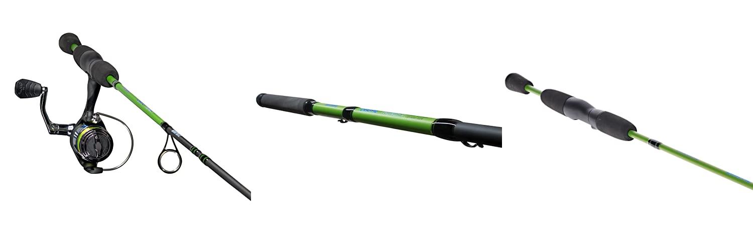 The Lew’s Crappie Thunder Spinning Rod is a 4-foot 6-inch, 2-piece fishing rod. It is built for crappie fishing. This rod features a premium graphite blank for strength and sensitivity. It has a comfortable EVA split grip handle. It is designed for light power and fast action, perfect for setting the hook. The rod is Crappie Thunder Green.