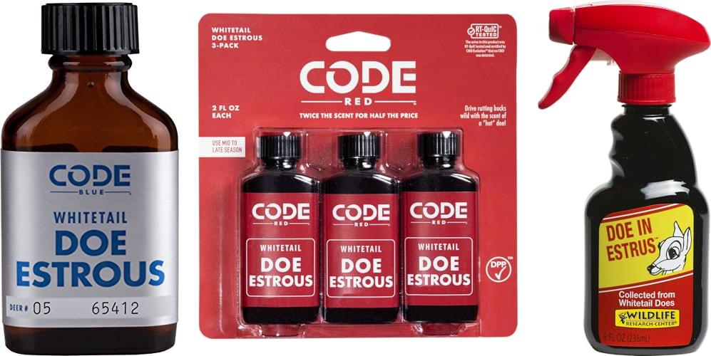 The Code Blue Whitetail Doe Estrous Triple Pack is designed to help hunters. It uses real doe urine collected during the estrous cycle. This scent is made to attract bucks. Bucks are looking for does in heat during the rut. The triple pack comes with three 2 fl. oz. bottles. You can also buy it in a single 2 fl. oz. bottle or a 4 fl. oz. bottle.