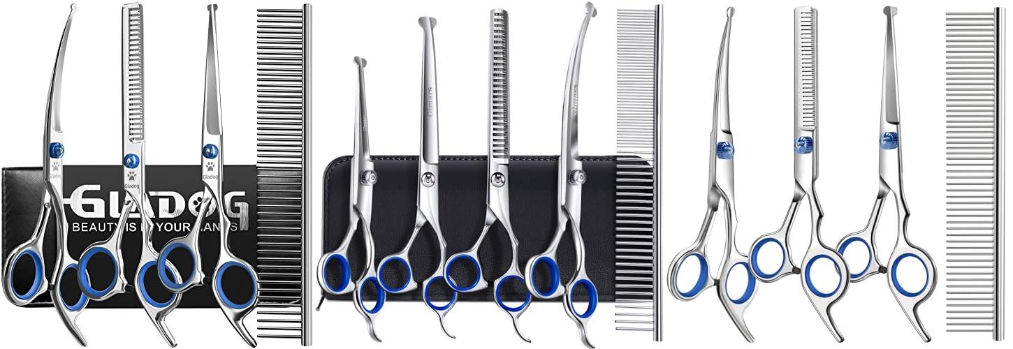 1. GLADOG Professional 5 in 1 Dog Grooming Scissors Set with Safety Round Tips