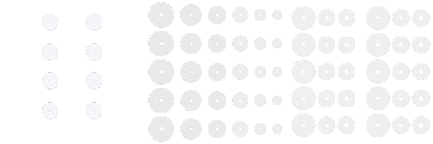 - Comes with 30 discs in 6 different sizes (3mm to 14mm) for a perfect fit on various piercings.