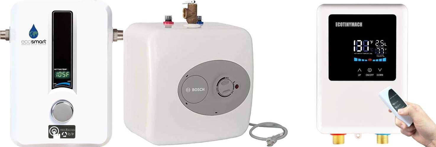 The EcoSmart ECO 11 is a good option for small spaces. It provides on-demand hot water and saves energy.