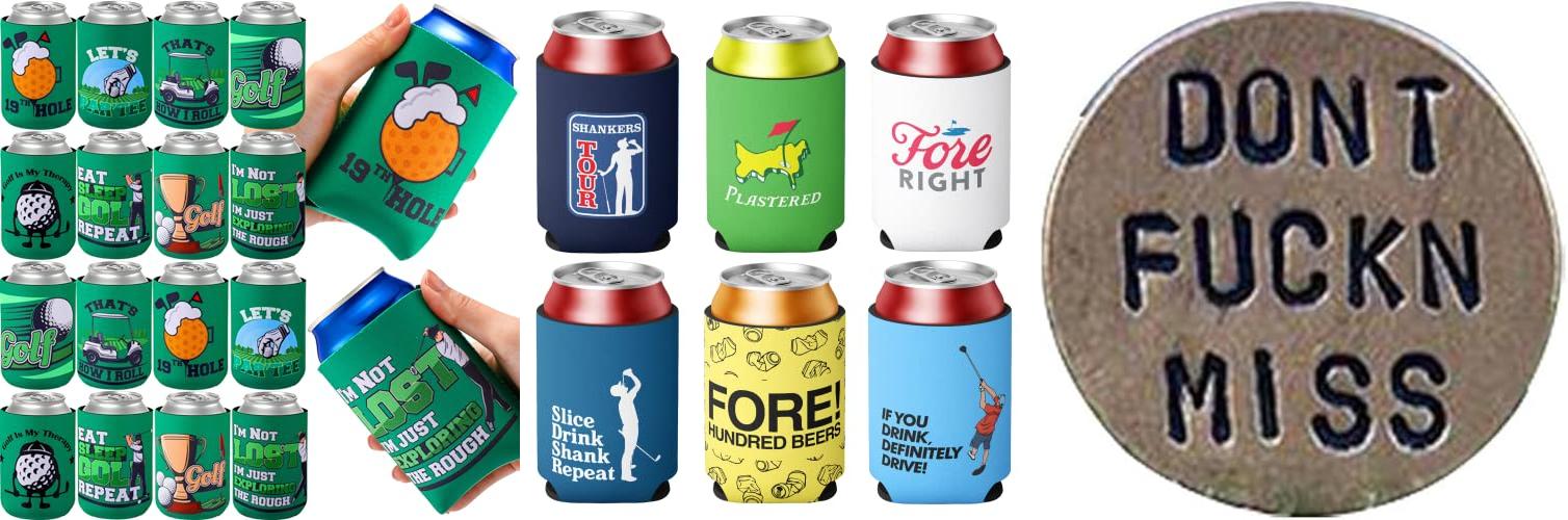 - You get a great value with 24 coolers in 8 different funny golf designs.