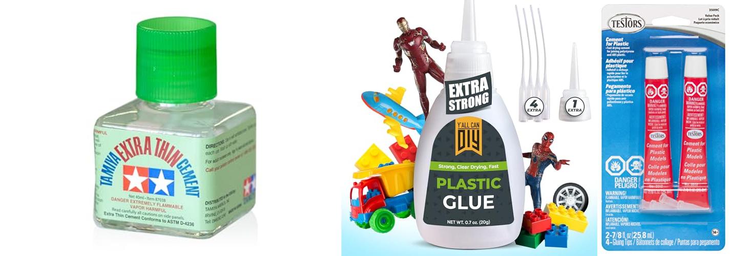 - Plastic Cement Glue For Models: The Testors glue works well on plastic model kits. You can also use it to fix things around the house made of plastic.
