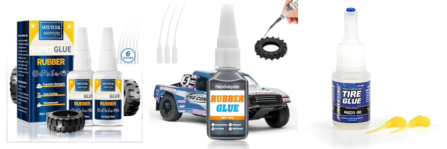 A: Some glues can become brittle and crack. Look for glues that mention flexibility or are specifically designed for rubber or plastics used in RC car tires.