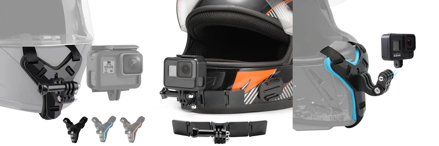 This Motorcycle Helmet Chin Mount Kit lets you easily attach your action camera to your helmet. It works with many popular cameras like GoPro Hero 13 down to the Hero 5, plus Xiaomi Yi, SJCAM, and Campark cameras. The curved adhesive pads make it simple to stick the mount securely to your helmet chin bar. This kit is great for capturing exciting POV footage while riding your motorcycle.