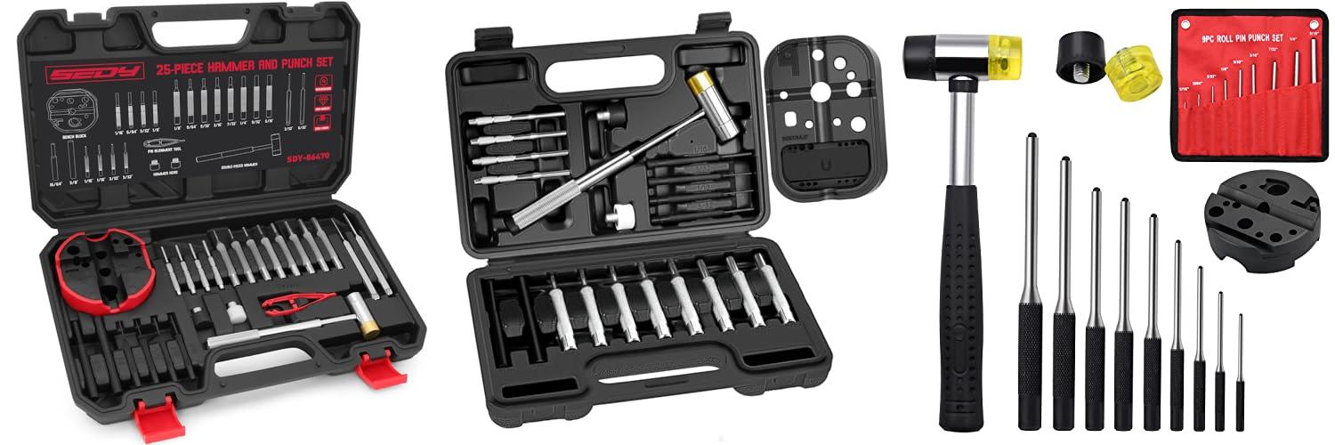 1. Pin Punch Hammer Set: 25-Piece Punch Set and Hammer with Bench Block