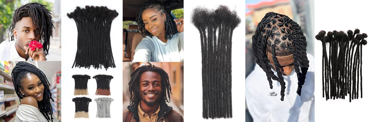 2. Dreadlock Extensions Human Hair 10-100 Strands 100% Full Handmade Permanent Loc Extension Human Hair for Women/Men/Kids Can Be Dyed Bleached Curled Twisted (0.6cm 1B