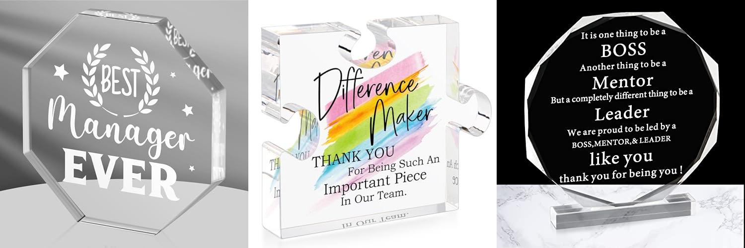• Stylish Desk Accent: The acrylic piece is a nice size (4.7 x 3.9 x 0.6 inches) and looks good on any desk or shelf. It serves as a constant reminder of their contributions.