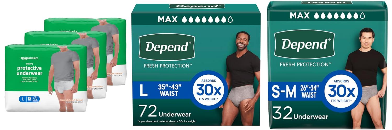 We checked out the Amazon Basics Incontinence Underwear for Men, Maximum Absorbency, Large, 54 Count. This is a pack of three, with 18 pairs in each. They’re designed for men who need extra protection during the day. The underwear promises maximum absorbency and all-day comfort. It also has features to help with odor control.