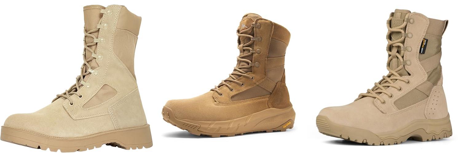• Leather: Many military boots are made of strong leather. Leather is tough and can last a long time. It also molds to your foot over time for a better fit.