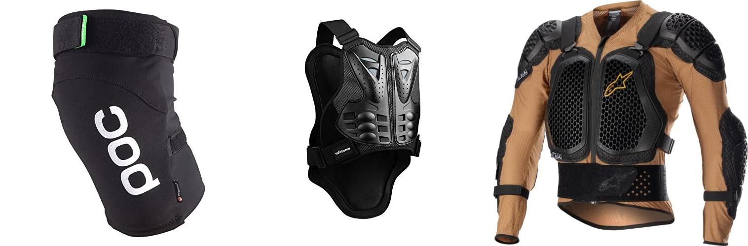 A: There’s chest protectors, back protectors, shoulder protectors, elbow pads, knee pads, and full-body suits. Choose what protects the areas most at risk in your riding style.