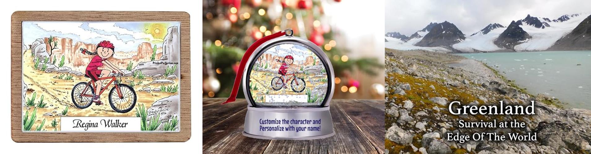 2. Personalized Friendly Folks Mountain Bike – Female Snow Globe Magnet – Great Gift!