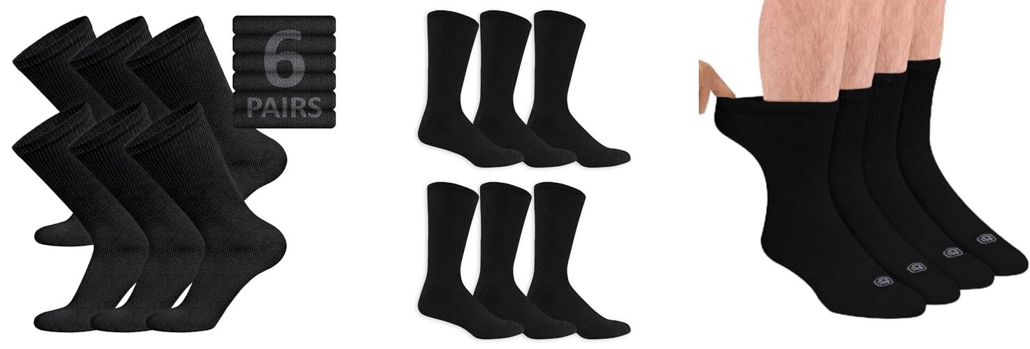 1. 6 Pairs of Cotton Diabetic Non-Binding Neuropathy Crew Socks (Black