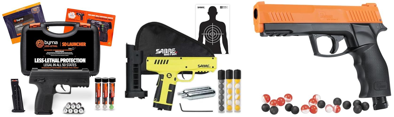 A: Pepper spray, stun guns, and air guns that shoot rubber bullets are common.