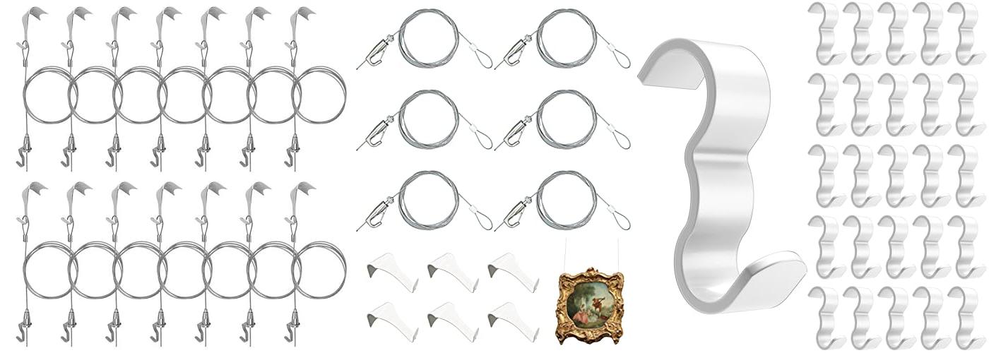 - This kit includes 20 rail molding hooks, 20 loop cords (each 3ft long), and 20 adjustable hooks. It’s a full package for easy picture hanging.