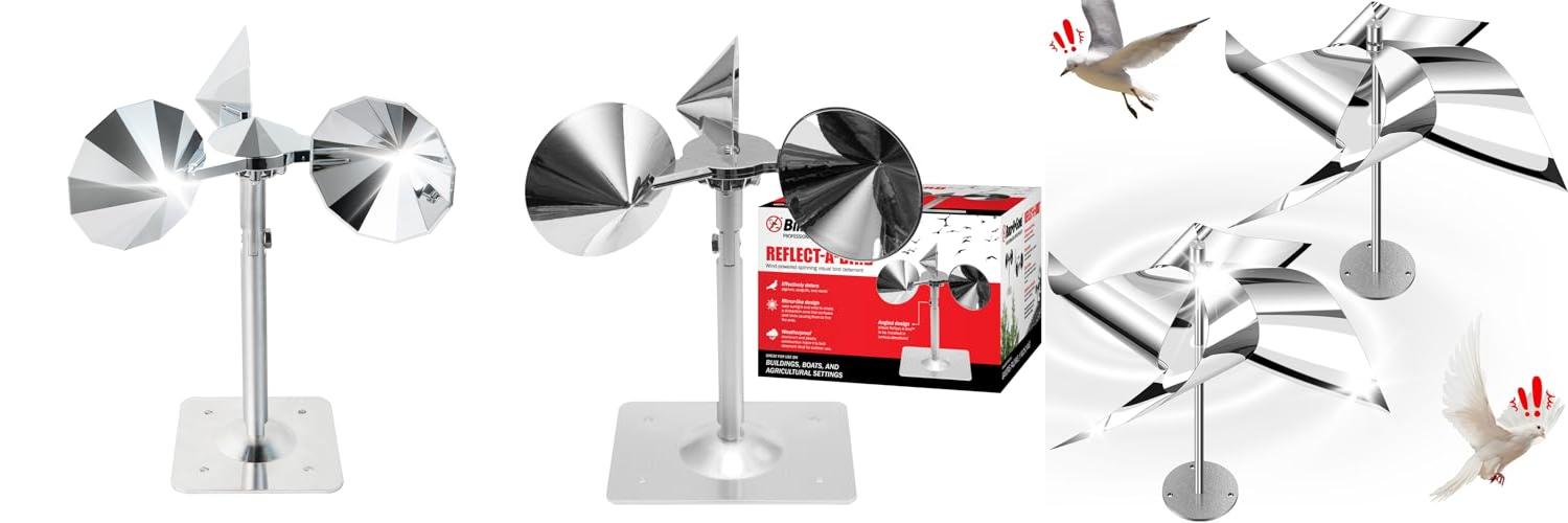 - Birds stay away: The spinning reflectors create a bright, flashing light that makes it impossible for birds like pigeons and woodpeckers to land or perch.