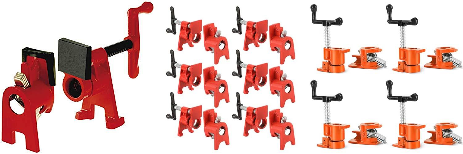 - This set comes with four strong pipe clamps, each with a heavy-duty lead screw for reliable clamping.