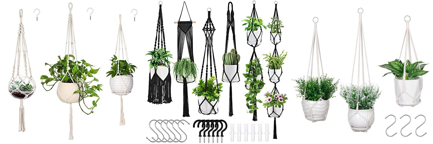 - This set offers amazing value. You get six different-sized macrame hangers, plus six “S” hooks, six ceiling hooks, and six expansion tubes. This means you have everything you need to start hanging your plants right away.