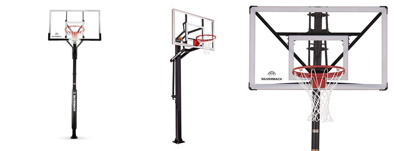 1. Silverback 60″ In-Ground Basketball System with Adjustable-Height Tempered Glass Backboard and Pro-Style Breakaway Rim