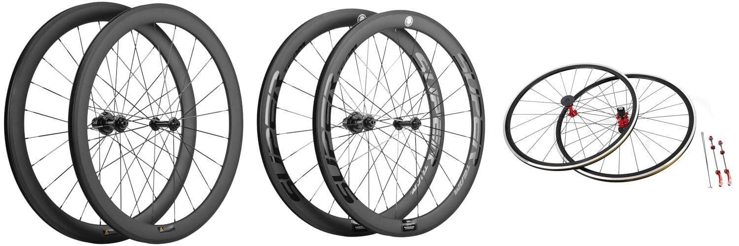 The Superteam Carbon Fiber Road Bike Wheels are built for speed. This 50mm clincher wheelset is designed for 700c racing bikes. They use Toray T700c full carbon fiber. These wheels also meet the EN quality standard. The wheelset weighs around 1565g, not including skewers. Please keep in mind these are international products and might be different from what you are used to.