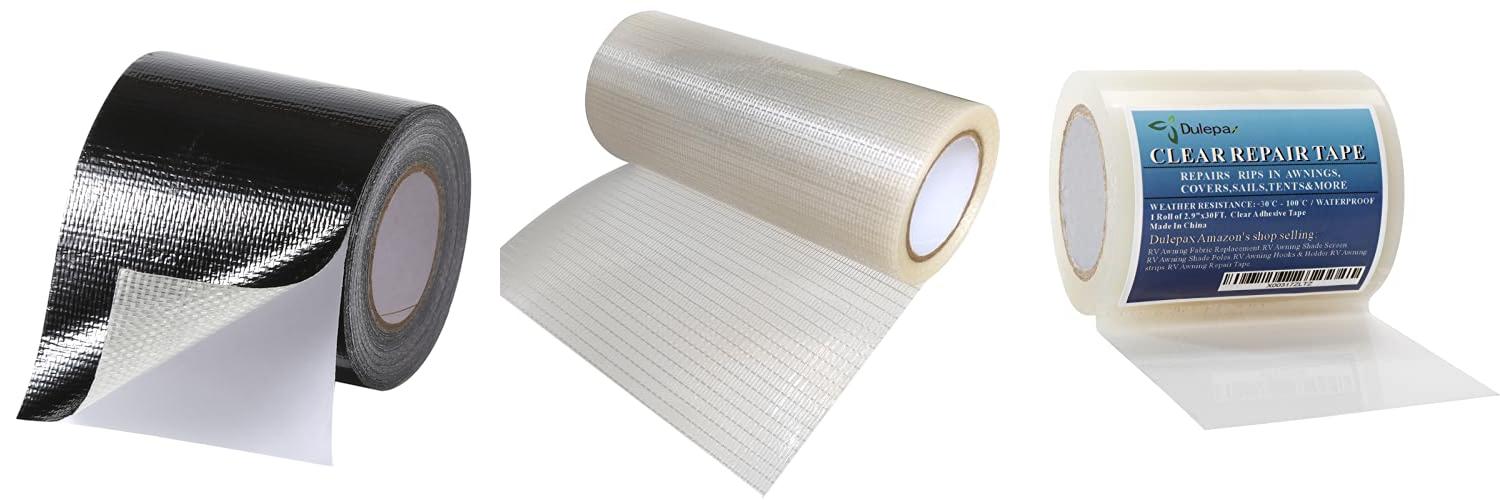 - Canvas: Some awnings are made of canvas. Look for repair tapes specifically designed for fabric or canvas.