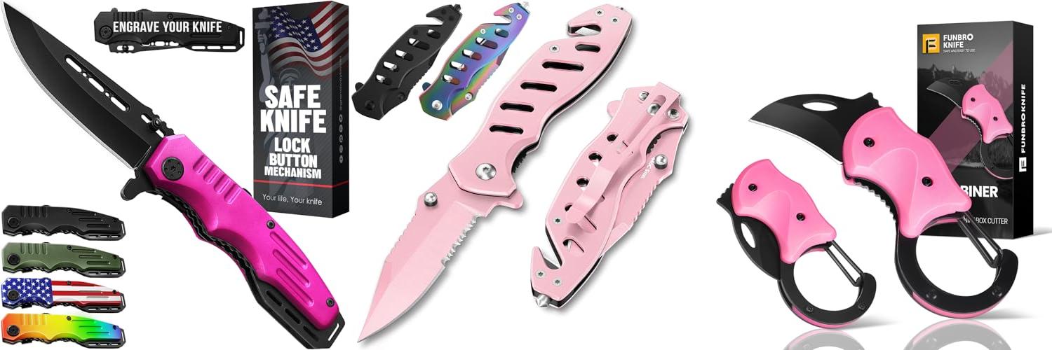 This pink pocket knife is a useful and fashionable item. It combines safety and style. It’s a great option for anyone looking for a reliable self-defense tool.