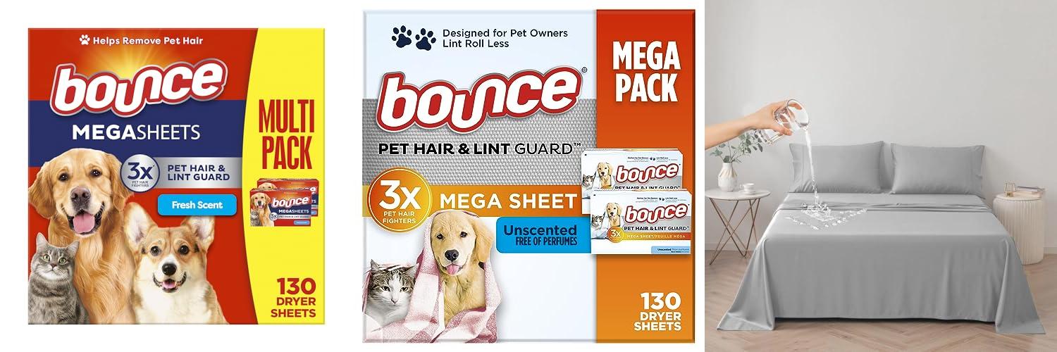 1. Bounce Pet Hair and Lint Guard Mega Dryer Sheets with 3X Pet Hair Fighters