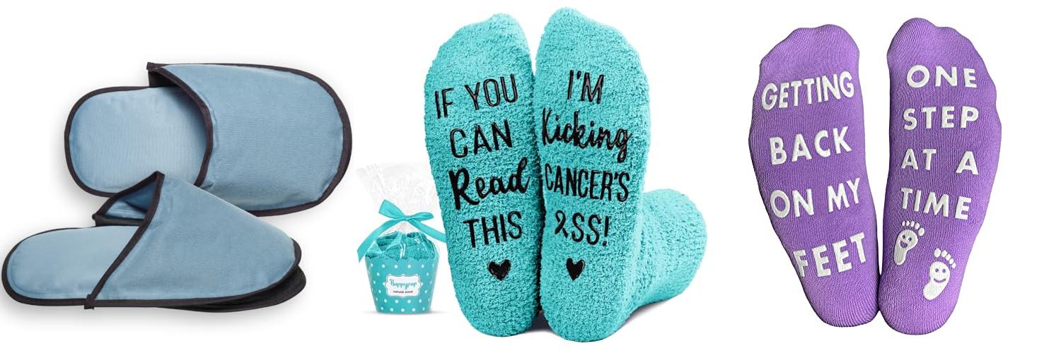 These socks are a thoughtful and cheerful present. They offer comfort, a bit of humor, and a powerful message of support for breast cancer fighters.