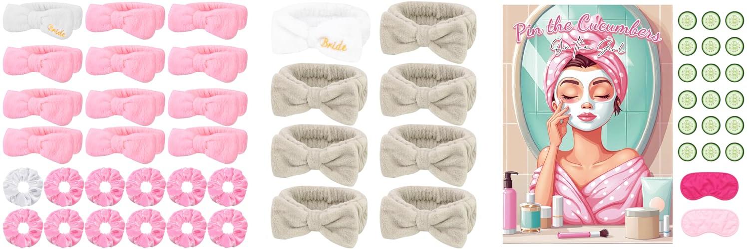 Get ready to celebrate in style with this adorable 24-piece bachelorette party favor set! It’s packed with everything you need to make your bride and her squad feel special during sleepovers, spa days, and the big celebration. This set includes 12 super comfy spa headbands and 12 cute scrunchies, all in sweet white and pink colors perfect for any wedding vibe.