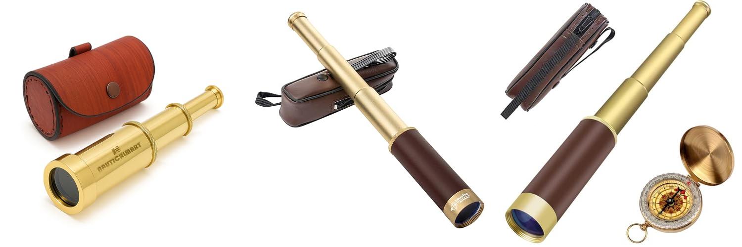 1. Solid Brass Handheld Telescope 6″ – Nautical Pirate Spy Glass with Free case
